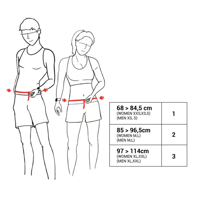 La ceinture existe en 3 tailles pour s’adapter à différentes morphologies. L’élastique de serrage vous permettra d’adapter le maintien de la ceinture.