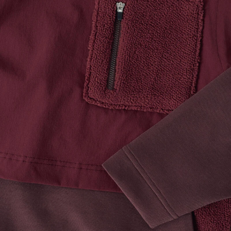 Nous avons pensé ce sweat pour vos ballades l’hiver. Pour éviter les inconforts dûs aux intempéries nous avons ajouté des panneaux coupe vent et déperlant sur le haut du pull en matière LILAC. L’indce de perméabilté PA est de 38,1l/m²/s