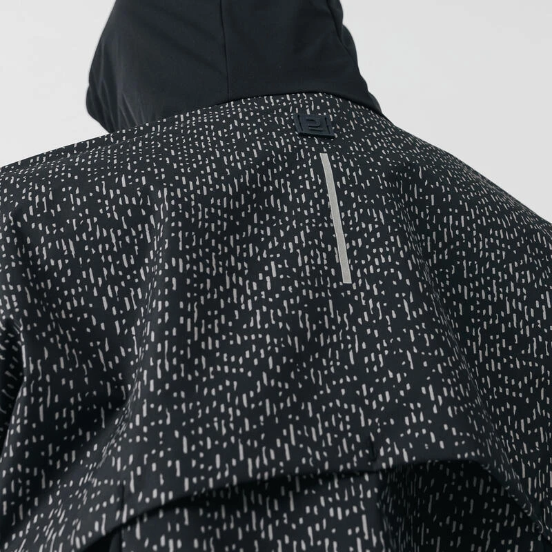 Nos équipes ont développé cette veste déperlante pour vous permettre de continuer à courir même sous une pluie fine en limitant les désagréments de la pluie.Veste au style affirmé : motif imprimé gris argenté, qui se révèle encore plus sous la lumière